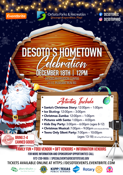 Its the most wonderful time of the year!!! You can experience all aspects of holiday cheer without leaving Southwest Dallas County. Check out these free family friend events in Desoto, Lancaster, Duncanville, Glenn Heights, and Cedar Hill.