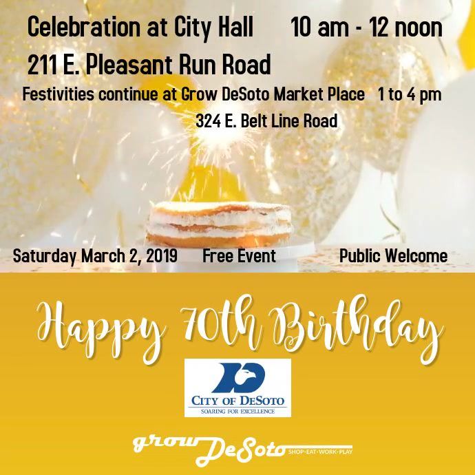 Please mark your calendar and save the date. The All American City Desoto is turning 70 years old and the celebration Saturday, March 2nd.